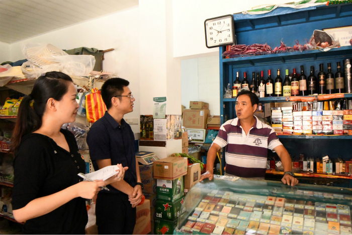 连日来,福建省福州市马尾区纪委监委进一步深化“入户走访”工作,派出10个工作组进村入户、实地走访、宣传信访举报政策,聚焦重点对象、重点领域、重点问题,深入了解有关职能部门履职情况及群众诉求,及时发现、整治群众身边的不正之风和腐败问题。图为马尾区纪委干部在琅岐镇龙台村向个体经营户了解相关情况。(马尾区纪委监委)
